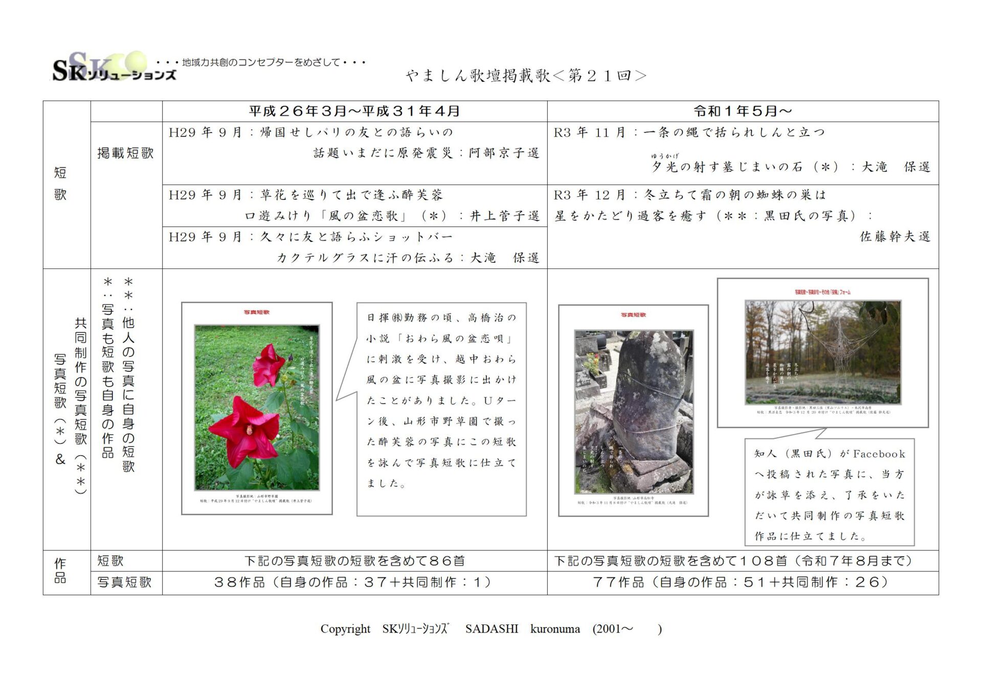 ・・・この度、添付の企画主旨に沿いこれまでやましん歌壇に掲載された拙詠草と