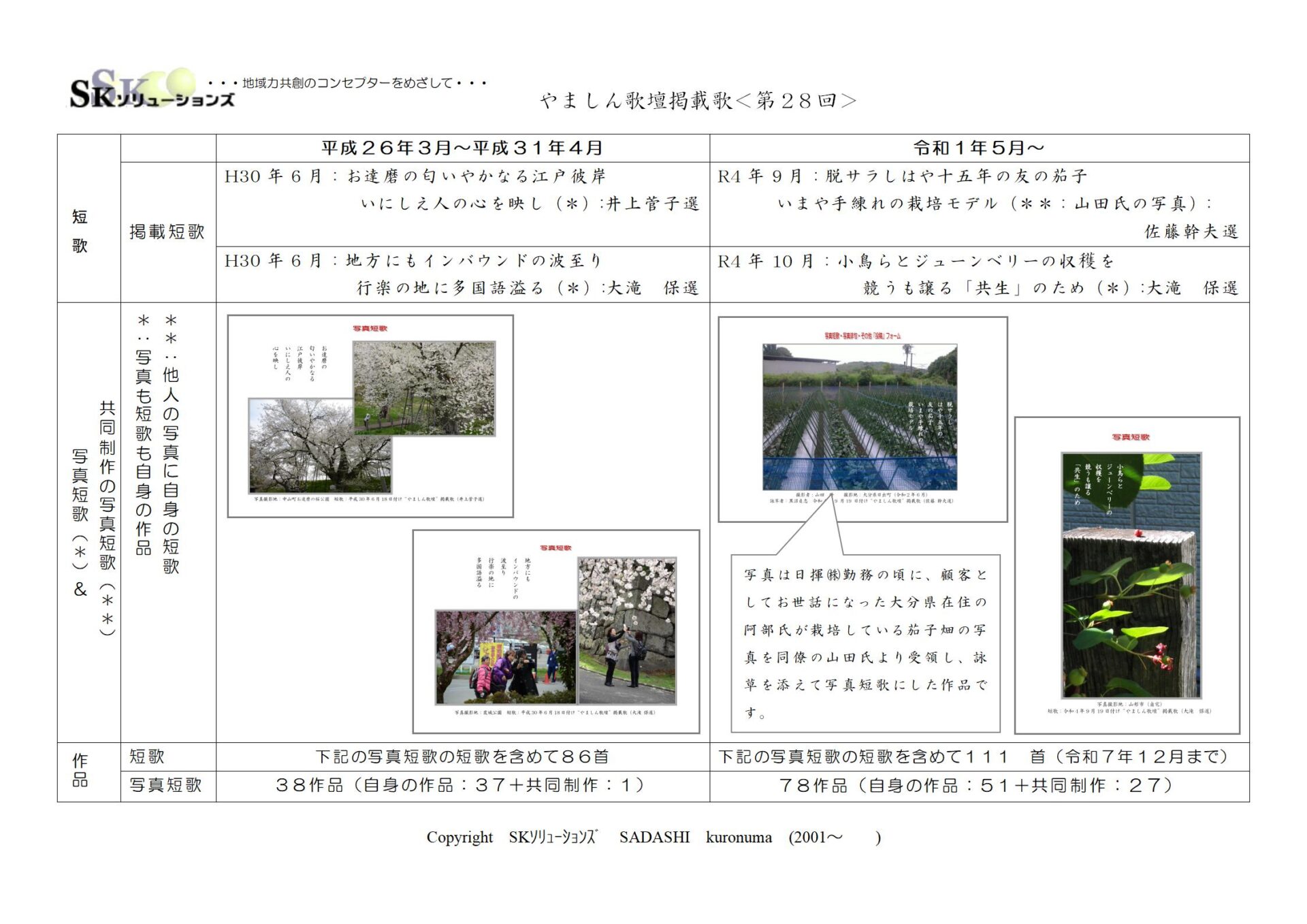 ・・・この度、添付の企画主旨に沿いこれまでやましん歌壇に掲載された拙詠草と