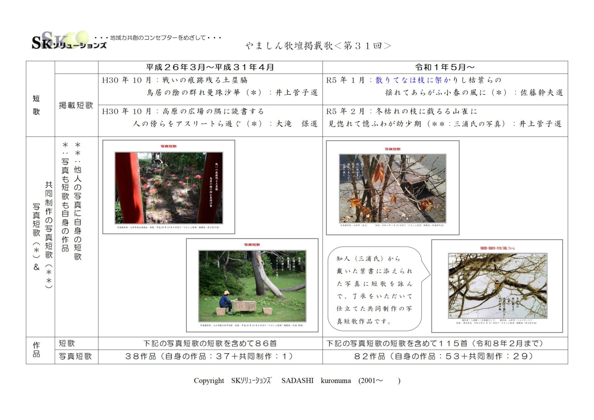 ・・・この度、添付の企画主旨に沿いこれまでやましん歌壇に掲載された拙詠草と