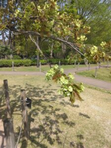 今年の桜は異常気象のためか早々と葉桜@霞城公園となりました。